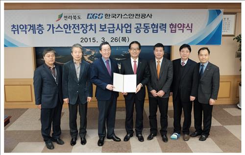 (서울=연합뉴스) 이웅 기자 = 한국가스안전공사는 전라북도와 가스안전사고에 노출되기 쉬운 취약계층 가정에 가스안전장치인 타이머콕을 무상으로 설치해주는 사업을 추진하기로 하고, 관련 업무협약을 맺었다고 26일 밝혔다.