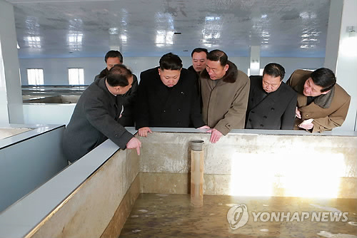 | △ 북한 김정은 위원장, 평양 메기공장 현지지도 (평양 조선중앙통신=연합뉴스) 북한 김정은 국방위원회 제1위원장이 평양메기공장을 현지지도 했다고 조선중앙통신이 23일 보도했다. 통신은 이 사진을 보도하며 촬영일자를 최근이라고 밝혔다. 2014.12.23 photo@yna.co.kr |