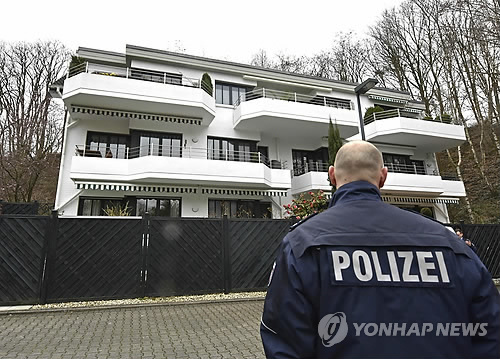 | △ 왜 그랬을까… (AP=연합뉴스) 알프스산에 충돌한 저먼윙스 여객기의 부기장 안드레아스 루비츠(28)가 거주한 것으로 보이는 독일 뒤셀도르프 소재 빌라 주택 앞에 26일(현지시간) 경찰관이 서 있다. |