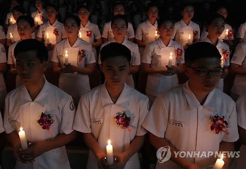 | △ 2030년에는 의사, 간호사 인력이 부족해지고 한의사, 치과의사 인력은 공급이 과잉될 것이라는 전망이 나왔다. 사진은 국군간호사관학교 나이팅게일 선서식.(연합뉴스 자료사진) |