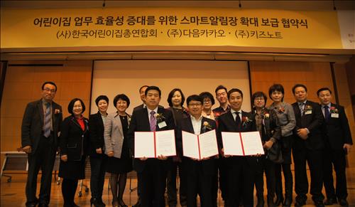 (서울=연합뉴스) 김은경 기자 = 다음카카오[035720]와 자회사 키즈노트는 한국어린이집총연합회와 스마트알림장 서비스 도입을 확대하기 위한 업무협약을 체결했다고 30일 밝혔다.