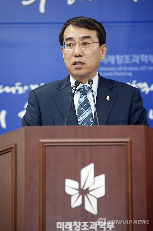 | △ 이석준 차관, 경기창조경제혁신센터 개소식 관련 브리핑 (서울=연합뉴스) 이석준 미래창조과학부 제1차관이 30일 오전 경기도 정부과천청사 미래부 기자실에서 경기창조경제혁신센터 개소식 관련 브리핑을 하고 있다. 2015.3.30 << 미래창조과학부 제공 >> photo@yna.co.kr |