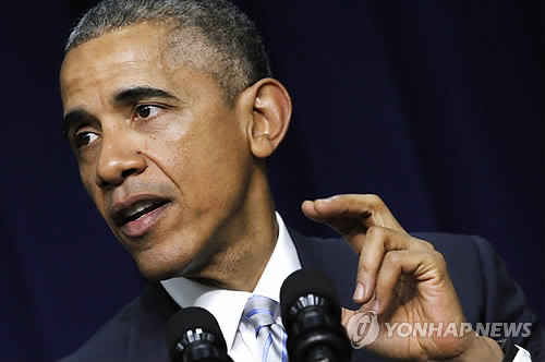 | △ (AP=연합뉴스) 버락 오바마 미국 대통령이 지난 25일(현지시간) 오바마케어(건강보험개혁법) 5주년을 맞아 연설하는 모습. |