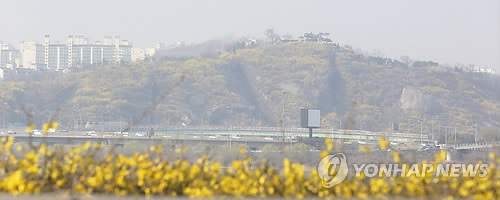 | △ 경기도 대부분 지역에서 이틀째 미세먼지주의보가 발령한 가운데 개나리가 미세먼지 영향으로 뿌옇게 보이고 있다. |