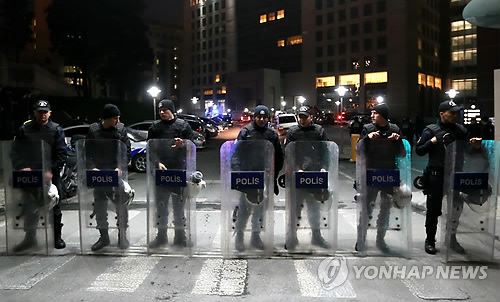 | △ 터키 검찰청서 인질극…3명 사망 (AP=연합뉴스) 터키의 극좌 테러단체 '혁명민족해방전선'(DHKP-C) 소속원 2명이 인질극을 벌인 이스탄불 법조단지 검찰청 밖에서 31일(현지시간) 밤 경찰이 도로를 막아선 채 경비에 나서고 있다. 경찰 특공대는 인질범과 협상이 실패하자 구출작전을 개시, 범인 2명을 사살했으며 총상을 입은 메흐메트 셀림 키라즈 검사도 치료 도중 사망했다. |