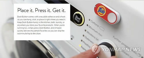 (샌프란시스코=연합뉴스) 임화섭 특파원 = 생수, 세제, 이유식, 기저귀 등 집에사 놓은 생활필수품이 바닥나려고 할 때 버튼만 누르면 배달이 되는 '대시 버튼' 서비스를 미국의 전자거래업체 아마존이 31일(현지시간) 시작했다.
