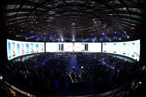 | △ 3월 31일 중국 베이징에서 열린 '갤럭시 S6' 월드투어 행사에서 '갤럭시 S6'와 '갤럭시 S6 엣지'가 최초로 공개되는 모습 |