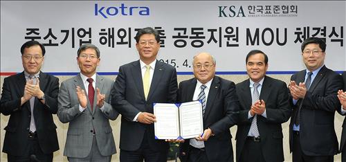 (서울=연합뉴스) 이웅 기자 = 코트라(KOTRA)는 1일 한국표준협회(KSA)와 중소기업의 해외 진출을 공동으로 지원하기 위한 포괄적 업무협약을 체결했다고 밝혔다.