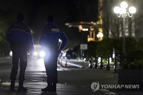 | △ (EPA=연합뉴스) 1일(현지시간) 새벽 경찰들이 이란과 미국 등 주요 6개국의 이란 핵협상이 열리고 있는 스위스 로잔의 보 리바지 팔라스 호텔 밖을 지키고 있다. 핵심 쟁점에 대한 양측 이견으로 합의안이 도출되지 않아 협상은 애초 예정된 마감 시한인 전날 자정을 넘겨 이날까지 계속됐다. |