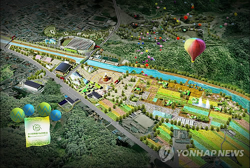 | △ 내년 9월 18일부터 24일간 충북 괴산군 동진천 변에서 '2015 괴산 세계 유기농 산업엑스포'가 열린다. 사진은 유기농 엑스포 조감도. <<연합뉴스DB>> |