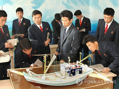 | △ 실습하는 북한 남포수산대학 학생들. (평양 조선중앙통신=연합뉴스) 2014.11.21 photo@yna.co.kr |