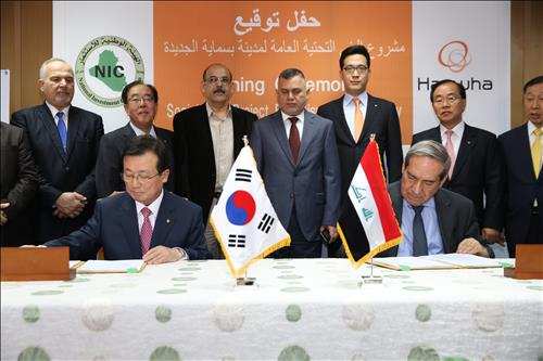 한화건설은 이와 관련해 5일 바그다드 소재 이라크 국가투자위원회(NIC) 별관에서 이근포 한화건설 대표이사, 김현중 한화그룹 부회장 등 한화그룹 관계자와 이라크 국가투자위원회 사미 알 아라지 의장 등 이라크 정부인사가 참석한 가운데 비스마야 신도시 소셜인프라(사회기반시설) 추가 공사에 대한 계약을 체결했다.