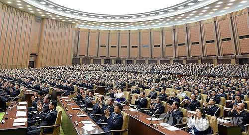 | △ 北 최고인민회의 제13기 2차 회의 (평양 조선중앙통신=연합뉴스) 조선중앙통신은 지난 25일 평양 만수대의사당에서 최고인민회의 제13기 2차 회의가 진행되었다고 지난 25일 촬영해 26일 보도했다. 2014.9.26 photo@yna.co.kr |