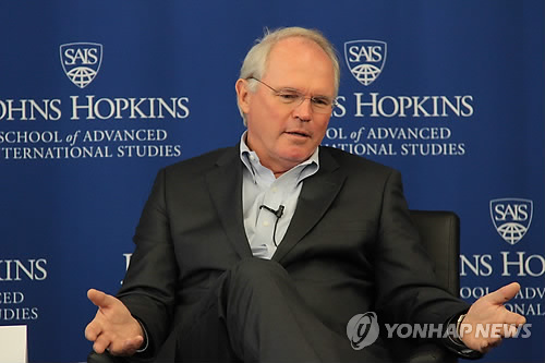 | △ 힐 전 美차관보 "이란핵협상, 6자회담 자극제 될수도" (워싱턴=연합뉴스) 심인성 특파원 = 크리스토퍼 힐 전 미국 국무부 동아시아태평양 담당 차관보가 6일(현지시간) 미국 주도의 이란 핵협상이 북한 비핵화 협상에 미칠 영향에 대해 언급하고 있다. |
