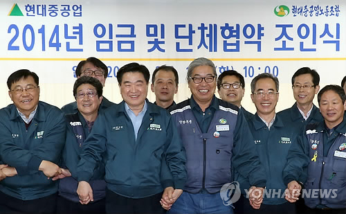 | △ 지난해 임단협 타결 조인식 모습. <<연합뉴스 DB>> |