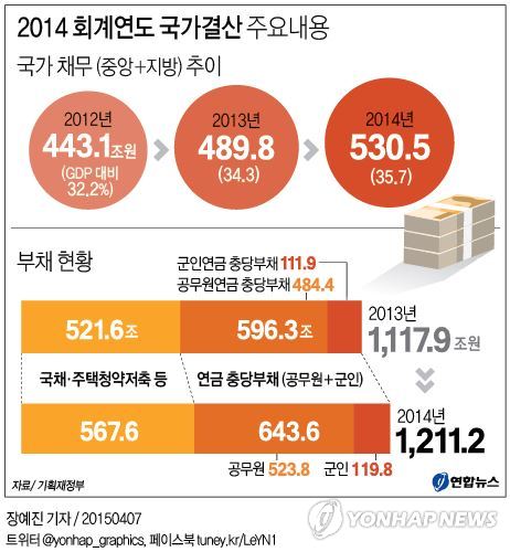 정부는 6일 국무회의에서 이런 내용을 담은 '2014 회계연도 국가결산'을 심의·의결했다. 정부는 감사원 결산 검사를 거쳐 내달 말가지 국회에 제출할 계획이다.