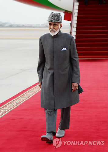 | △ (AP=연합뉴스) 오만의 술탄 카부스 빈 사이드 국왕이 23일(현지시간) 무스카트에 도착하고 있다. 카부스 국왕은 독일에서 치료를 받은 뒤 8개월 만에 귀국했다. |