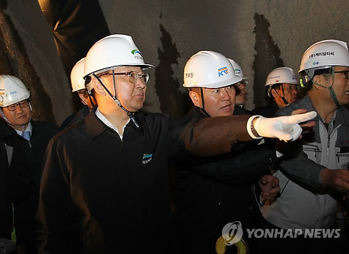 (세종=연합뉴스) 이재영 기자 = 유일호 국토교통부 장관은 7일 경기도 시흥의 소사∼원시 복선전철 건설 현장을 찾아 대형 굴착공사 안전관리를 당부했다.