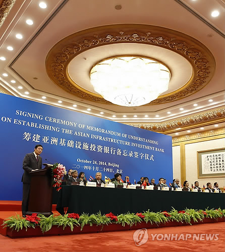 | △ 아시아인프라투자은행(AIIB) 설립 양해각서(MOU) 체결식.(AP=연합뉴스) |