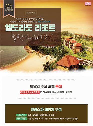(서울=연합뉴스) 전준상 기자 = SM C&C 투어익스프레스는 4월의 호텔로 전남 신안 엘도라도 리조트를 선정하고 '힐링스파 패키지'를 내놓았다.