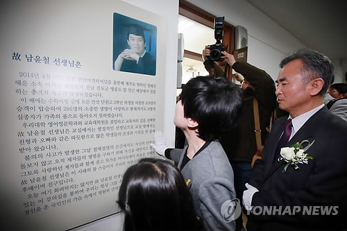 남 교사의 어머니 송경옥씨는 "학교를 여기저기 누비고 다녔을 20대 시절의 아들 모습이 눈에 보이는 것 같다"며 "적극적이고 밝았던 아들의 용기와 열정, 인생이 서린 곳이라 가슴이 벅차다"고 말했다.