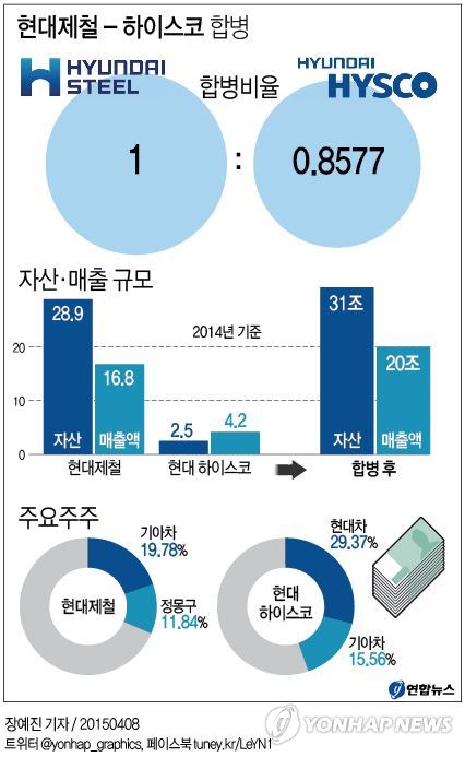 현대제철, 현대하이스코, 현대BNG스틸 등 자동차용 강판과 부품을 공급해 온 현대차그룹 3개 철강 계열사 가운데 2개가 이번에 하나로 합쳐지는 것이지만, 스테인리스강판을 생산하는 현대BNG스틸은 현대제철의 자회사여서 철강 부문이 사실상 하나로 통합되면서 단일한 체제를 이루게 된다.