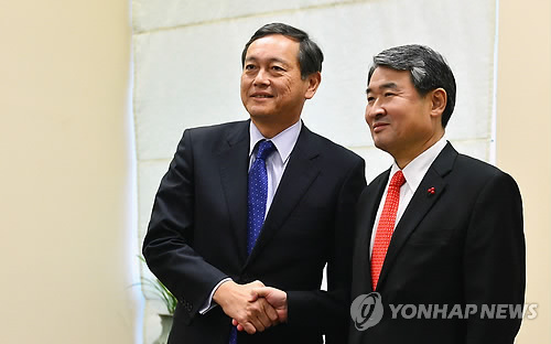 | △ 조태용 외교부 1차관(오른쪽)이 지난해 12월 서울 종로구 세종로 외교부 청사에서 사이키 아키타카 일본 외무성 사무차관과 악수를 하고 있다. (연합뉴스 자료사진) |