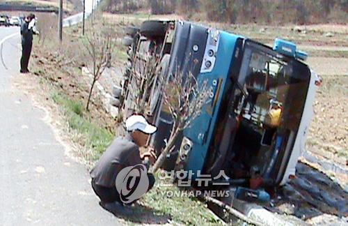 | △ 옆으로 넘어진 전세버스(연합뉴스 자료사진) |