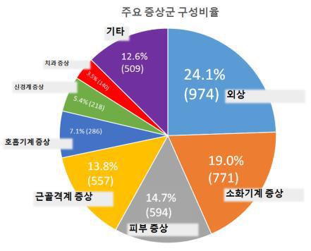 조사결과를 보면 극지에서 의무실을 찾는 주요 원인은 피부 상처나 염좌 같은 외상이 24%로 가장 많았다. 이어 소화불량과 복통 등의 소화기 증상 19%, 습진과 피부염증 등의 피부 증상 15%, 근육통과 관절염 등의 근골격계 증상 14% 등이었다.