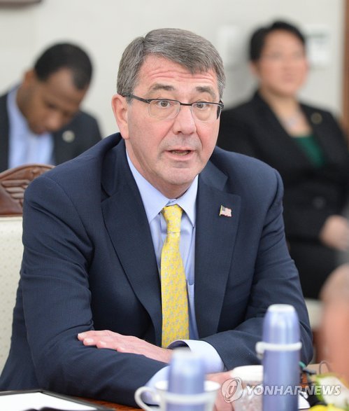(서울=연합뉴스) 이영재 기자 = 한국을 방문 중인 애슈턴 카터 미국 국방장관은 10일 한민구 국방장관을 만나 천안함 사건이 한미동맹에 대한 북한의 위협을 보여주는 상징이라고 강조했다.