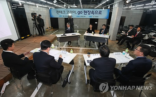 | △ 임종룡, 핀테크 사업자와 간담회 (서울=연합뉴스) 임헌정 기자 = 임종룡 금융위원장이 24일 오후 서울 강남구 역삼동 창업지원공간(마루 180)을 찾아 핀테크 사업자 등과 간담회를 하고 있다. 임 위원장은 이날 "핀테크 산업의 장기적 성장을 위해 산업의 저변을 이루는 핀테크 스타트업이 다양한 분야에서 활발하게 등장할 수 있어야 한다"며 "핀테크 지원센터 구축을 통해 자금조달부터 행정, 법률 애로 해소까지 종합적으로 지원하겠다"고 약속했다. '핀테크'는 금융을 뜻하는 파이낸셜(financial)과 기술(technique)의 합성어로 정보기술(IT)을 기반으로 한 새로운 형태의 금융 기술을 말한다. 2015.3.24 kane@yna.co.kr |