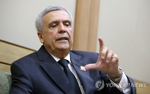 | △ 연합뉴스와 인터뷰하는 베네디토 브라가 위원장 (대구=연합뉴스) 한종찬 기자 = 12일 오전 대구 북구 EXCO에서 베네디토 브라가 세계물위원회 위원장이 연합뉴스와 인터뷰를 하고 있다. 2015.4.12 saba@yna.co.kr |