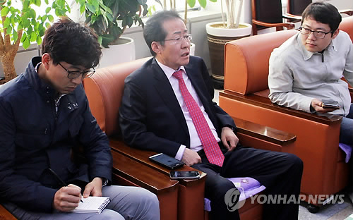 | △ '성완종메모' 홍준표, 금품수수 의혹 전면 부인 (창원=연합뉴스) 최병길 기자 = 자원외교 비리 의혹으로 검찰 수사를 받다가 숨진 채 발견된 성완종 전 경남기업 회장의 메모에 '홍준표 1억'이라고 적힌 것과 관련, 홍준표 경남도지사가 10일 경남도청 프레스센터에서 "성회장을 잘 알지도 못하고 돈을 받을 정도로 친밀감이 없다"고 밝히고 있다. 2015.4.10 choi21@yna.co.kr |