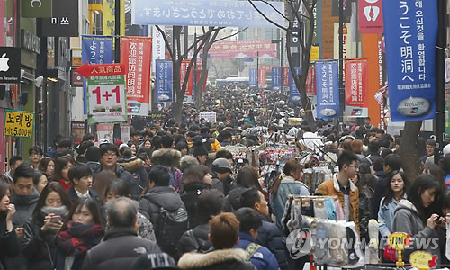 | △ 중국인 관광객 등으로 붐비는 명동 거리(연합뉴스 자료사진) |