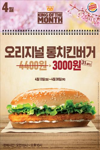 <쇼핑정보>버거킹, 오리지널롱치킨버거 한정할인 판매
