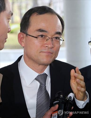 | △ '성완종리스트' 특별수사팀장인 문무일 대전지검장이 13일 서초구 서울고등검찰청으로 출근하고 있다. 문 검사장은 "이번 사건에 대해 결연한 의지를 갖고 진상을 철저히 규명하도록 진력할 것"이라고 밝혔다. |