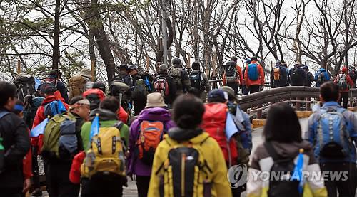 | △ 지난달 29일 서울 강북구 우이동 북한산국립공원 도선사 탐방로 입구에서 등산객들이 산을 타기 위해 이동하는 모습. |