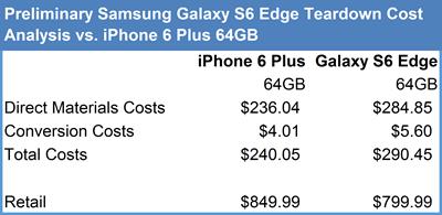 IHS 디렉터인 앤드루 라스와일러는 "갤럭시S6엣지의 부품원가는 지금까지 출시한 갤럭시 시리즈 중 가장 높다"고 말했다.