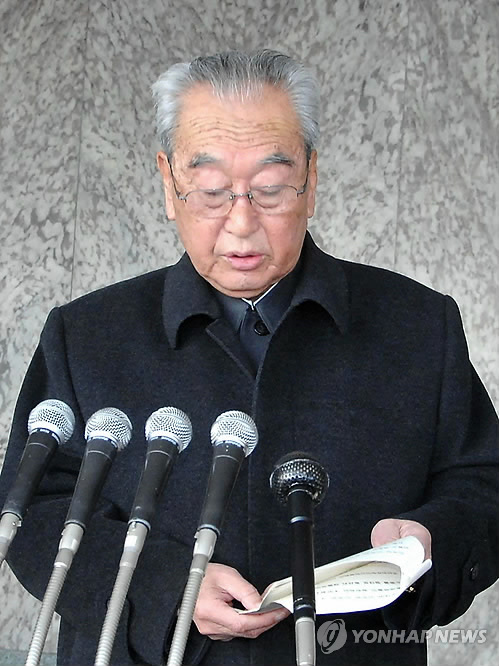 | △ 연설하는 북한 김기남 (평양 조선중앙통신=연합뉴스) 25일 북한 평양 김일성광장에서 열린 평양시 군민대회에서 김기남 노동당 선전담당 비서가 연설하고 있는 모습을 조선중앙통신이 이날 보도했다. 2014.11.25 photo@yna.co.kr |