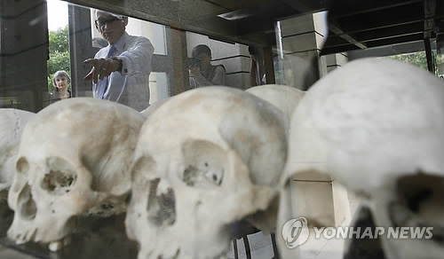 | △ 캄보디아 프놈펜의 초응엑 대학살 센터에 안치된 희생자들의 유골. (EPA=연합뉴스 DB사진) |