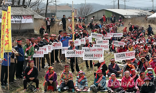| △ 포천주민 "사격장 소음 시끄러워 못살겠다" (포천=연합뉴스) 노승혁 기자 = 3일 오후 경기도 포천시 미8군 로드리게스 훈련장(영평사격장) 입구에서 영평·승진사격장 대책위 회원들과 인근 마을 주민들이 안전 대책을 요구하는 집회를 열고있다. 지난해 11월 이후 최근까지 사격장 너머 마을인 영북면에서만 총탄과 포탄이 떨어지는 사고가 세 차례 발생했다. 2015.4.3 nsh@yna.co.kr |