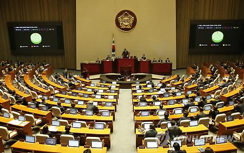 | △ 세월호 선체의 온전한 인양을 촉구하는 결의안 통과 (서울=연합뉴스) 이상학 기자 = 16일 국회 본회의장에서 세월호 선체의 온전한 인양을 촉구하는 결의안이 처리 통과되고 있다. |
