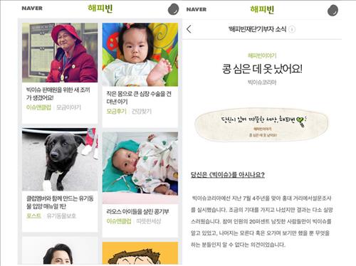 (서울=연합뉴스) 윤보람 기자 = 네이버의 온라인 기부 플랫폼인 해피빈은 지난 1년간 모바일 버전을 통한 모금액이 총 10억원을 돌파했다고 16일 밝혔다.