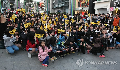 | △ 진실은 침몰하지 않는다 (의정부=연합뉴스) 최재훈 기자 = 16일 오후 경기도 의정부시 행복로에서 시민이 세월호 참사 1주년을 추모하는 플레시몹 공연 '진실은 침몰하지 않는다'를 열고 있다.2015.4.16 jhch793@yna.co.kr |