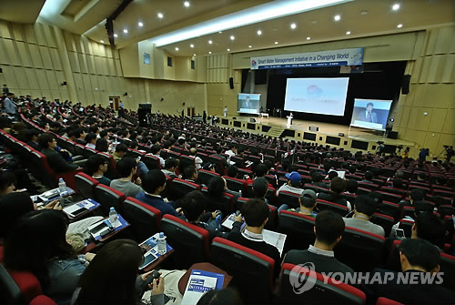 | △ 스마트 물관리 (대구=연합뉴스) 한종찬 기자 = 16일 오전 대구 EXCO에서 2015 대구·경북 세계물포럼 동시행사 스마트 물관리 세션이 열리고 있다. 2015.4.16 saba@yna.co.kr |