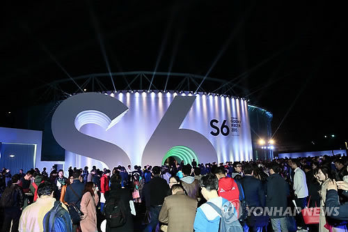 | △ 중국 베이징 '갤럭시 S6' 월드투어 (서울=연합뉴스) 지난달 31일 중국 베이징에서 열린 '갤럭시 S6' 월드투어 행사 직전 미디어 관계자들과 소비자 등이 입장을 기다리고 있다. 이날 행사에는 미디어, 거래선, 소비자 등 1천여 명이 참여했다. 2015.4.1 << 삼성전자 제공 >> photo@yna.co.kr |