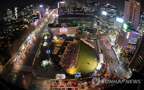 서울광장에 4천160개 촛불로 되살아난 세월호