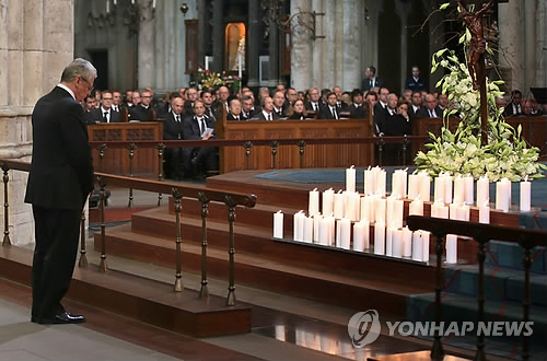 독일 전역에 정부가 조기 게양을 권고한 가운데 치러진 추모식에선 이들과 함께 유족 500명 등 모두 1천400명 가량이 참석해 성당 밖 추모객들과 나란히 헌화나 촛불 점화로 희생자들의 넋을 기렸다.