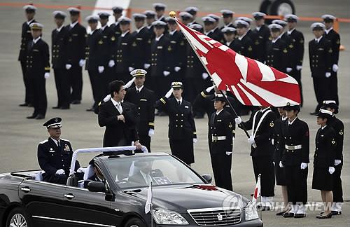 | △ 자위대 창설 60주년 행사에 참석한 아베 신조 일본 총리(EPA=연합뉴스DB) |