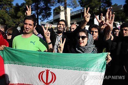 | △ 지난 3일(현지시간) 스위스 로잔에서 주요 6개국과 핵 협상을 마치고 돌아오는 이란 외무장관을 환영하는 시민들. (AP=연합뉴스) |
